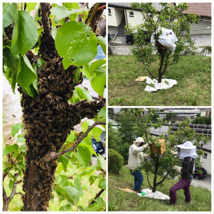 Um 11 Uhr kam ein Anruf von einem befreundeten Imker „hast du Zeit, magst einen Schwarm? Ich hätte einen für dich!“