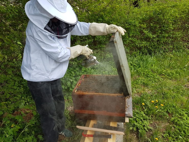 Damit es mir dieses Jahr nicht wieder so geht, habe ich mich informiert- Jawohl! Und da sind wir jetzt- Sanne (alias Sunshine) und die Bienen…